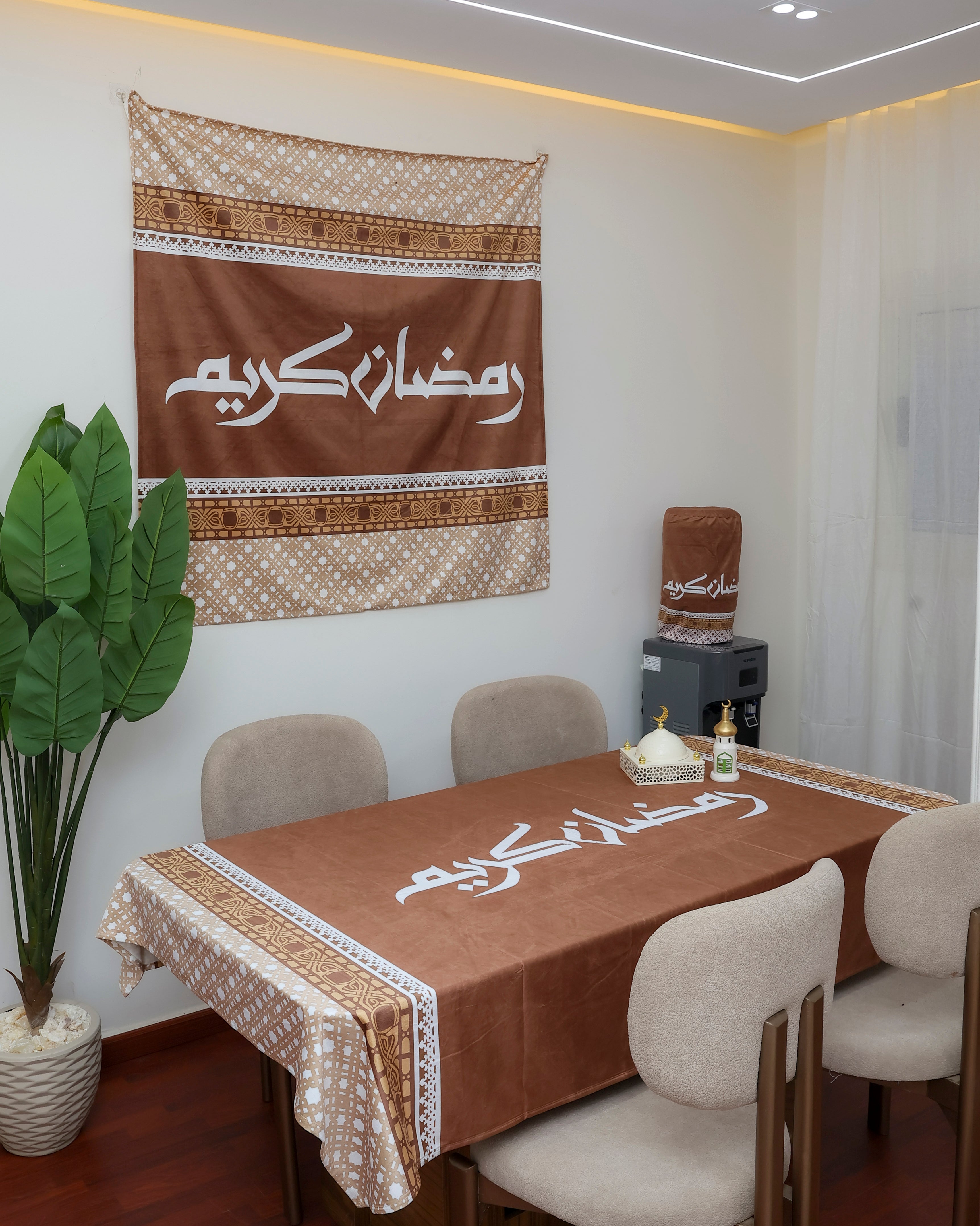 Our elegant and modern Ramadan Tablecloth designed to fit the largest tables. Ideal for a dining table for 6-8 people.